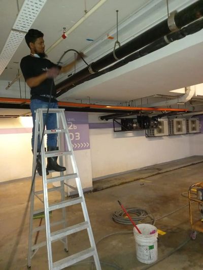 At Tenaga Kreatif Services Sdn Bhd, we provide specialized drain line cleaning services using high-pressure water jetting technology to effectively clear blockages and clogs in drainage systems.